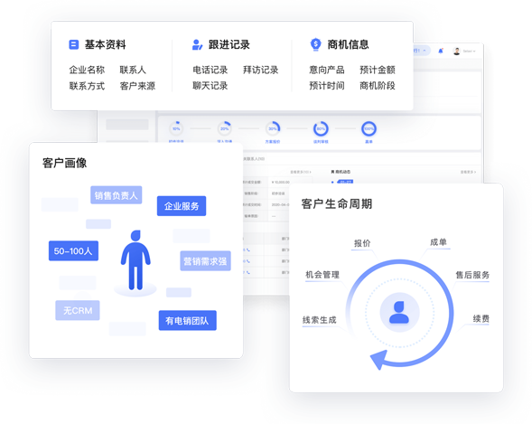 客戶基礎信息、跟進記錄、商機信息等全面記錄,以精細化客戶管理加速商機轉化